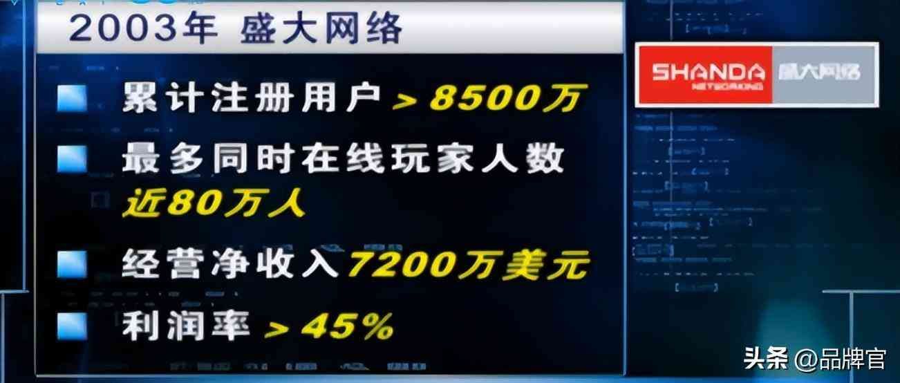 2001年,陈跳桥用自己攒下的30万美元,买下了韩国的一款二流游戏《传奇》在中国的代理权。没想到一夜爆火,注册的玩家数量竟然高达八千多万,在线人数峰值超过60万人,“收割”了一波70、80后玩家,这一年盛大的年收入达到了6.8亿元,利润大约1亿元。
