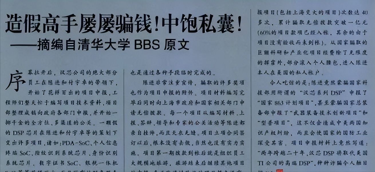 那是2006年一月,清华论坛上突然出现了一篇名为”汉芯黑幕“的帖子。