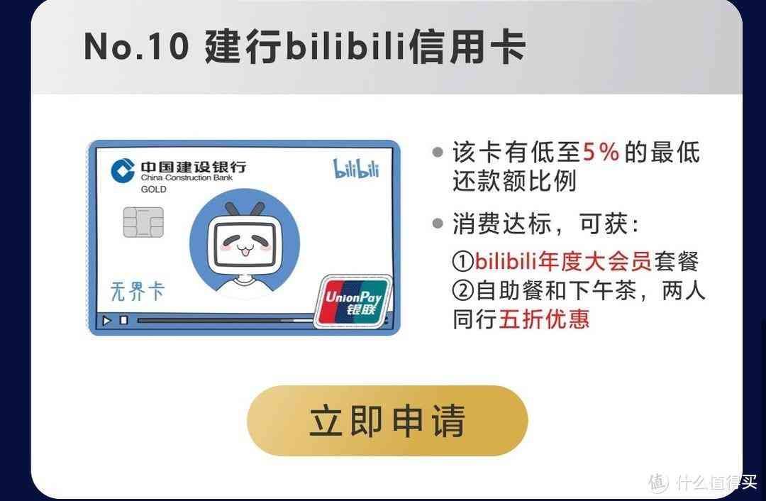b站的忠实粉丝们,这张卡你们就不要错过了,有最低5%的还款比例,而且,有b站的会员套餐赠送,自助餐啊、下午茶啊,两人同行五折优惠,等于是买一送一的节奏了,杠杠的,这个优惠还不错呢!
