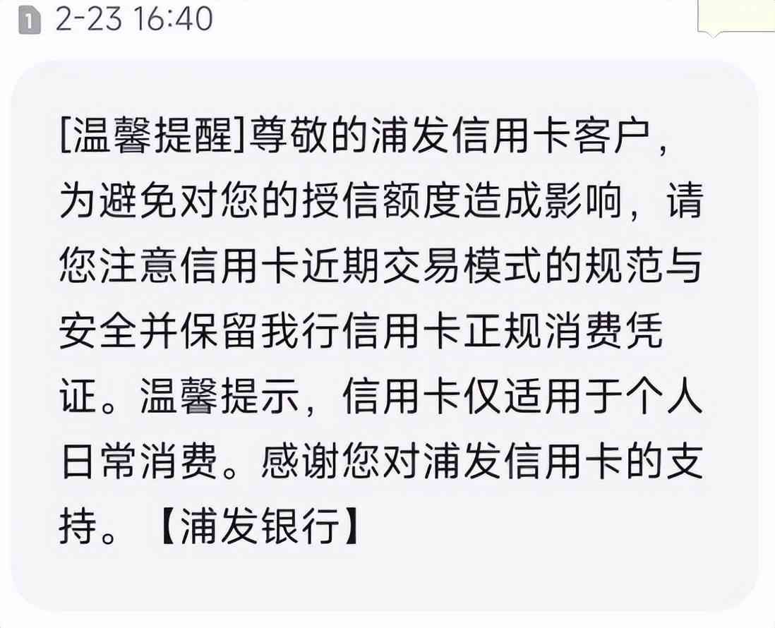 因信用卡授信不严被罚后,浦发银行疑似要收紧信用卡额度,开始群发风控短信。