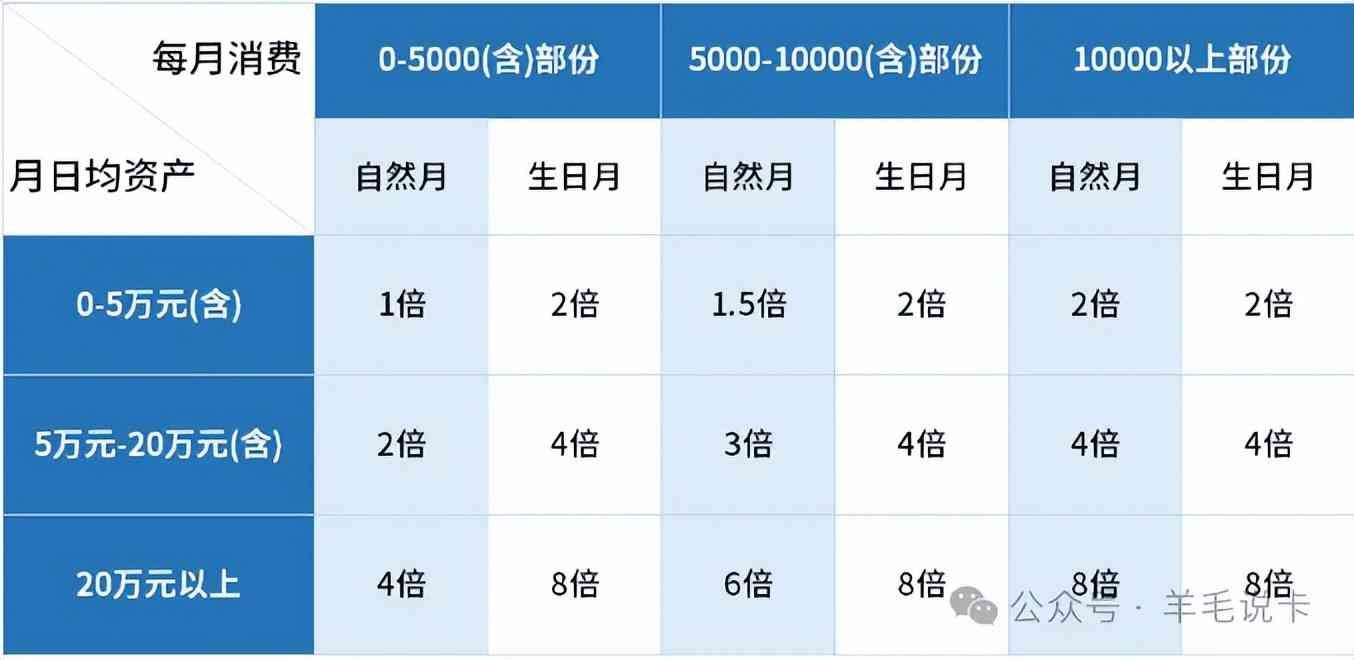 消费次日,先到账1倍积分,然后根据当月月日均资产,在次月月底前补足相应奖励积分。额外奖励积分最高不超过固定额度的8倍。