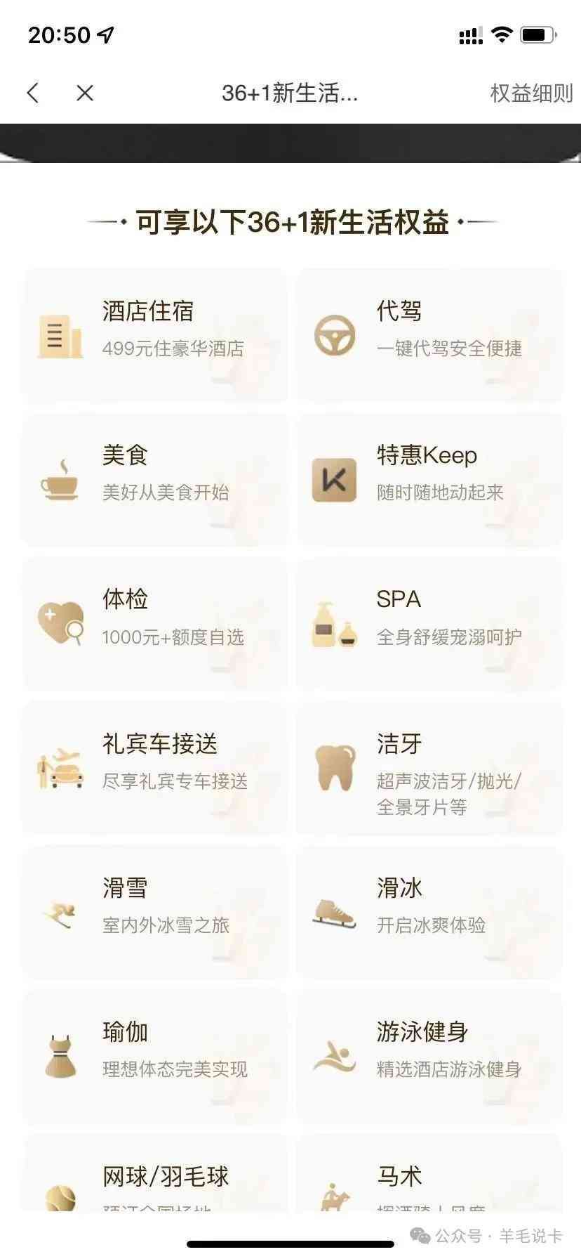 2年费的白金卡,每个月消费6,获取3个“36+1”权益,全年最多36个“36+1”权益。