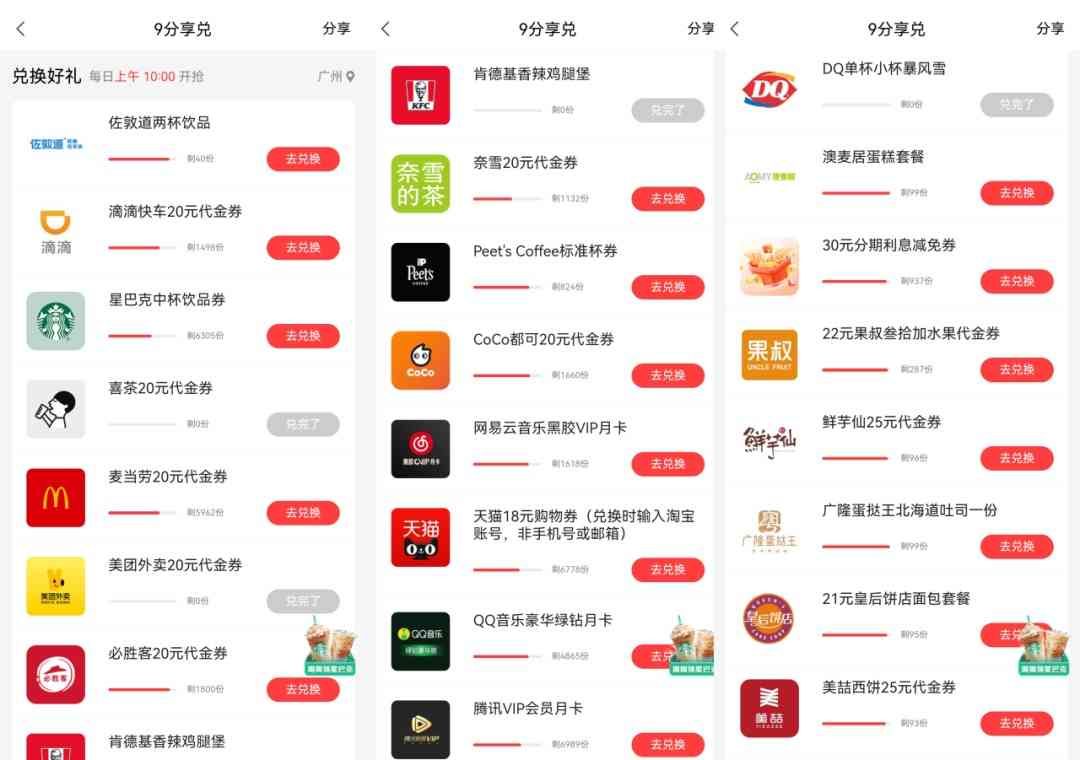 喜欢喝饮料的,可以换星巴克、奈雪、喜茶,我平常是兑换视频会员为主,腾讯的或爱奇艺的,方便家里人刷剧。
