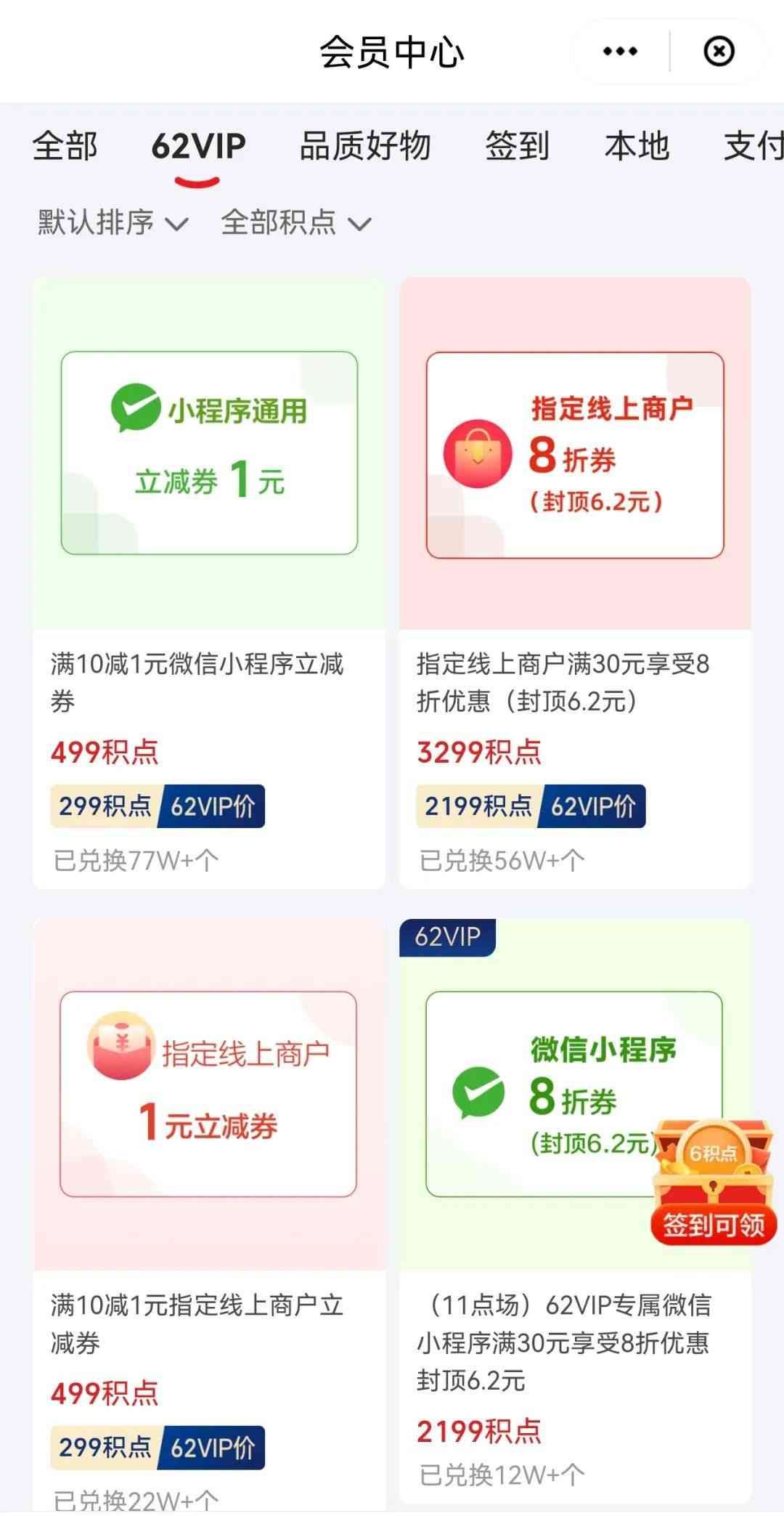 但身为会员,可以用“积点”换一些支付折扣券,比如在微信的饿了么付款打8折之类的。
