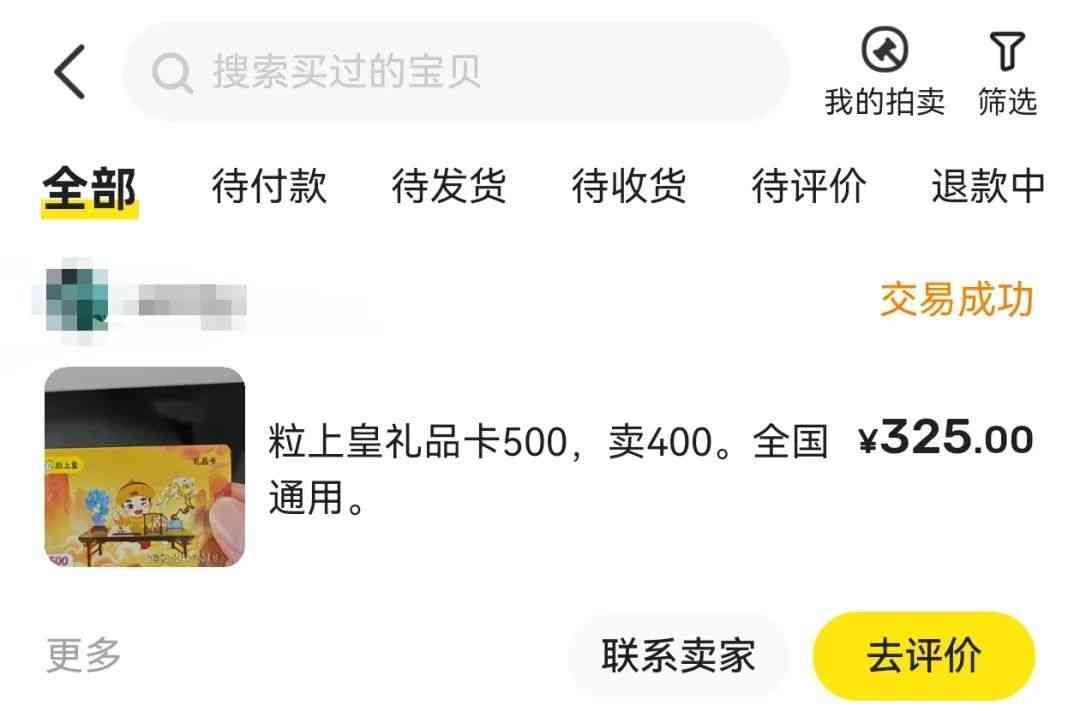 有点贵,舍不得,跑到闲鱼一搜,结果发现有人转让粒上皇的礼品卡。