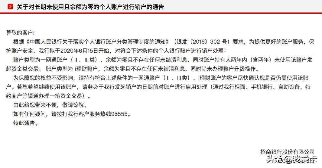 招行信用卡办理多久可以注销掉,6月15日起招行这些账户将自动销户