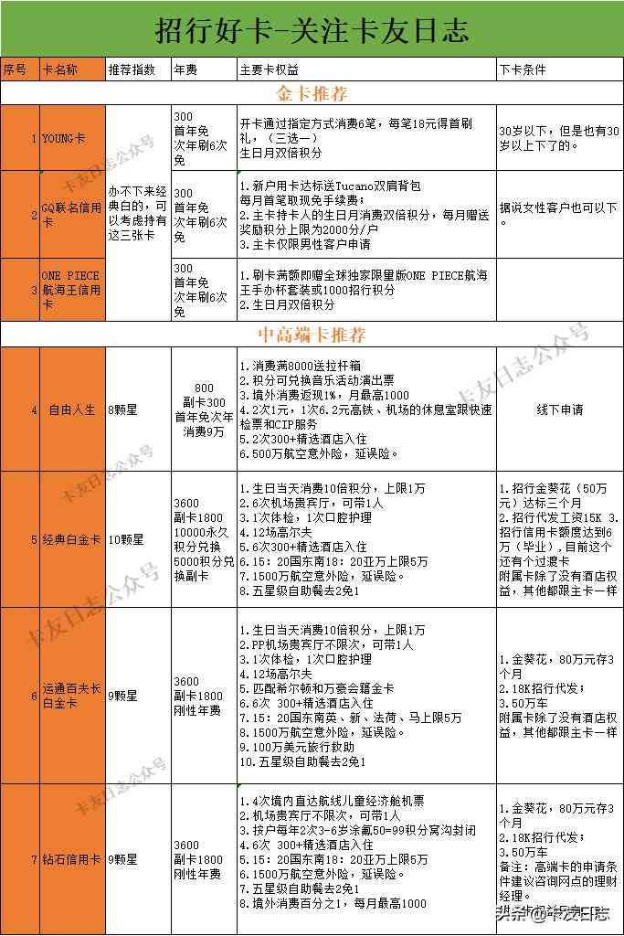 1、跟招行有业务往来的,直接想办法办经典白,然后再加持生日月双倍积分卡。