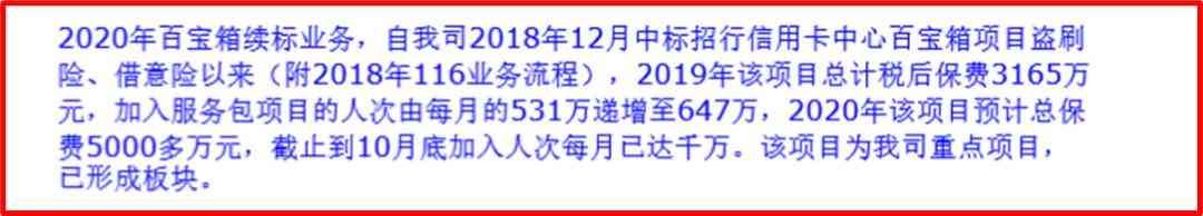 开甲财经获得的一份介绍材料显示,2019年,太平财险-招行信用卡百宝箱加入用户647万,到2020年10月,用户达到了1万。按人均每月10元计算,招行信用卡仅凭借该服务包年收入轻松超过10亿元。