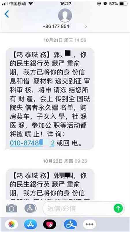 经过协商,郭先生与其中的三家银行谈好,分期还款,第一年每月少还一些,第二年多还一些,这样可以减轻他的还款压力。因为没有按时向民生银行苏州分行还款,2019年下半年和2020年上半年,郭先生和爱人多次接到第三方催收公司的短信、电话骚扰,催促他尽快还款,他多次投诉,最近就没有再拨打电话,只发短信。记者看到短信内容提到郭先生欠民生银行信用卡逾期,记者拨打留下的电话号码,号码已经暂停服务。