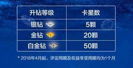 星钻等级:普通、银钻、金钻、白金钻、终生白金钻。