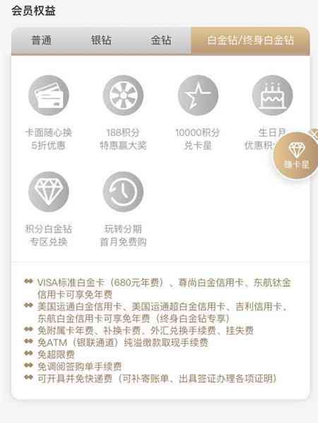 名下个人账户中任意一张未销户卡片持续有效满5年且持续保持白金钻等级可参与评定终身白金钻等级!