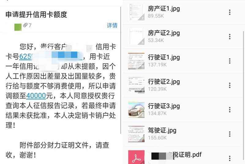 您好,本人某某是贵行信用卡客户,卡号是xx由于出差,装修,出国等等原因,贵行给予的消费额度不够用,所以特向贵行提出提额申请,提额至xx万额度然后再奉承一番,最后写上附件为本人财力证明,请核实。