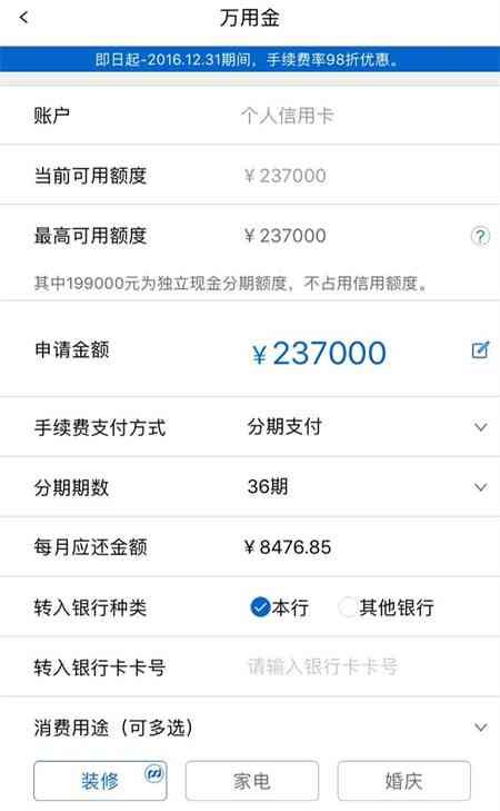 目前浦发主推的一个产品,其实就是给持卡人的一个消费专属资金,办理后会开立一个备用金账户,并且把钱转到备用金账户里,然后进行分期还款。