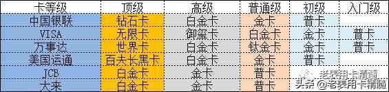 今天老表就给大家科普一下信用卡等级、卡组织等级和对应的区别。