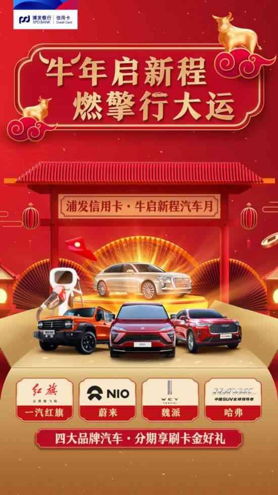 当前,汽车市场持续回暖,尤其是新春佳节前迎来汽车销售高峰期,消费者对自主品牌认可度也不断提高。不过,汽车产业结构性调整依然继续,自主品牌分化加剧,马太效应凸显,强者愈强。浦发信用卡经过充分的市场调查和资源整合,最终集结哈弗、WEY、一汽红旗、蔚来四大国潮汽车品牌,为持卡人度身推出“牛启新程汽车月”活动,让这些国潮当红汽车购买者在新的一年迎接更加幸福美好的车生活。