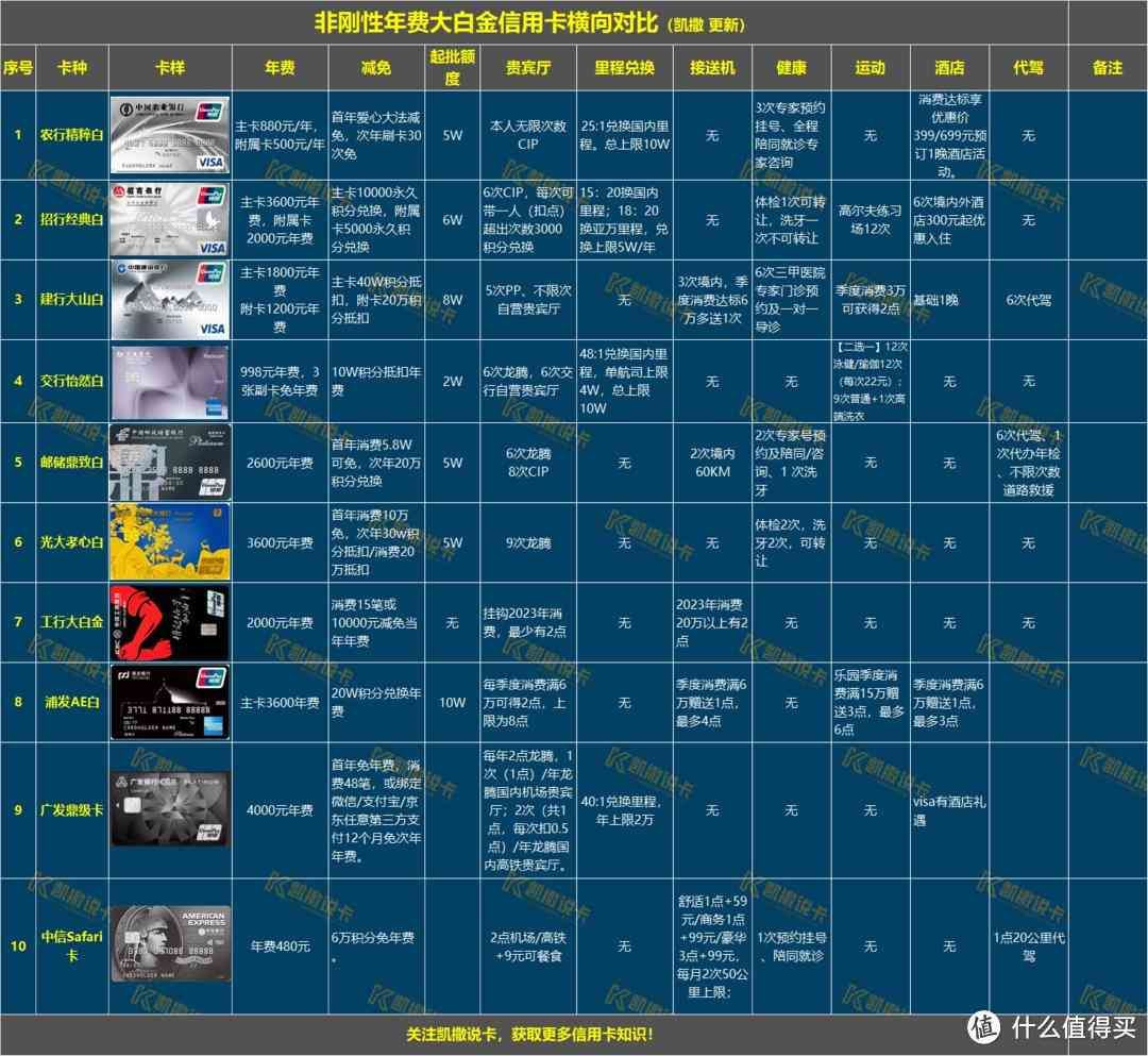 今天,咱们先来看看2024年值得玩的非刚性年费大白金卡。