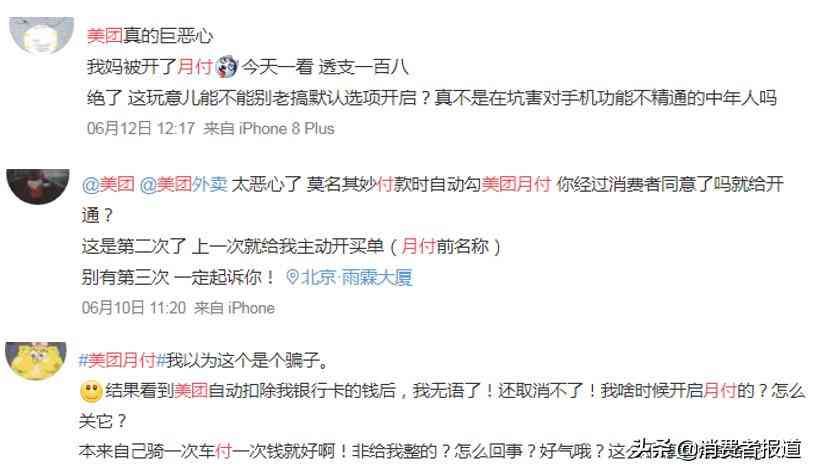类似的情况在黑猫投诉平台上并不少见,《消费者报道》也联系了一些反映在不知情下开通美团月付的用户,部分人表示美团已解决了问题,他们也按指示关闭了月付功能。