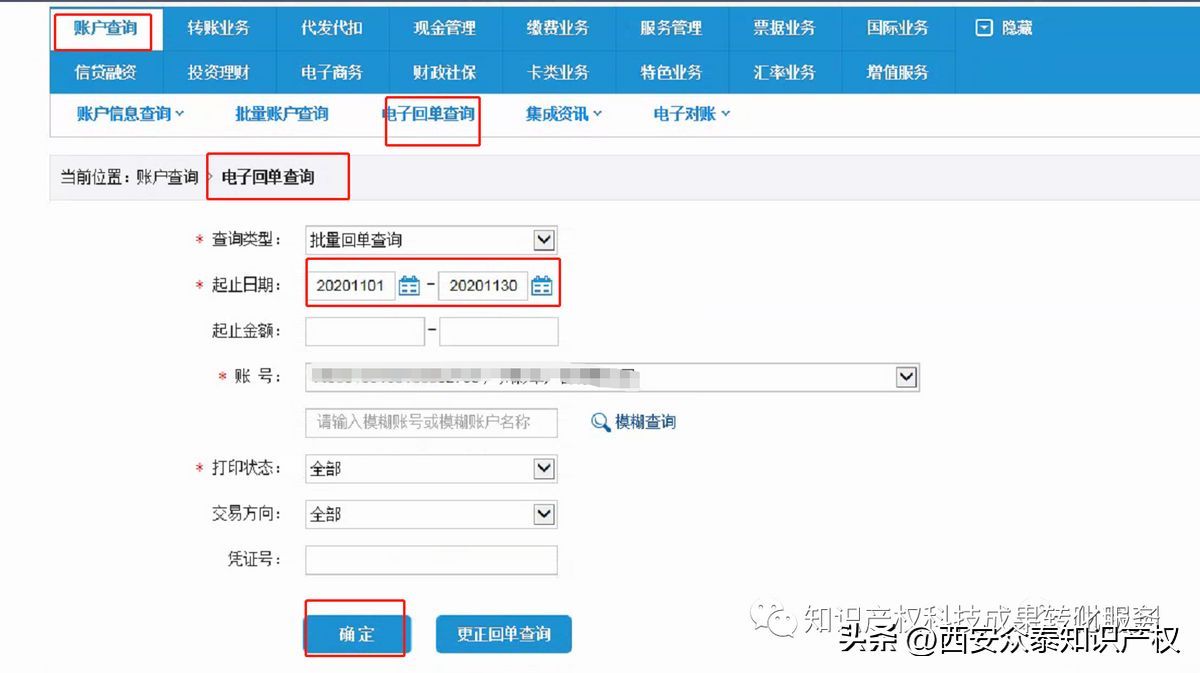 1.登入建设银行网上银行首页,点击【电子回单查询】并选择起止日期后,点击【确定】;