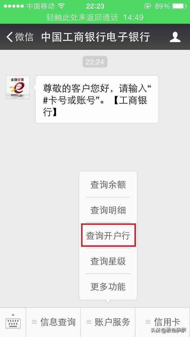 2.网上查询:登录银行的官方网站,在账户查询服务中选择“开户行查询”,然后输入自己的银行卡号和密码进行查询。有些银行还提供了微信公众号查询功能,关注并绑定银行卡后,点击“账户查询”中的“开户行信息查询”即可。