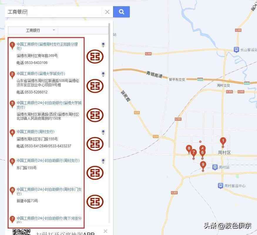 7.百度地图查询(前提你还记得自己在哪里开的卡),这也是我最常用的方法,直接百度地图**银行,地图上就会出现银行所有网店,找到自己开卡的银行,简介里就有支行名称。