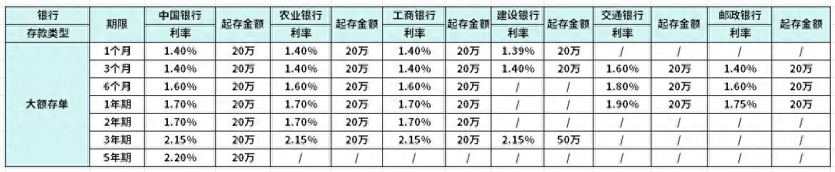 大额存单利率最高的银行有哪些,国有银行大额存款最新利率表