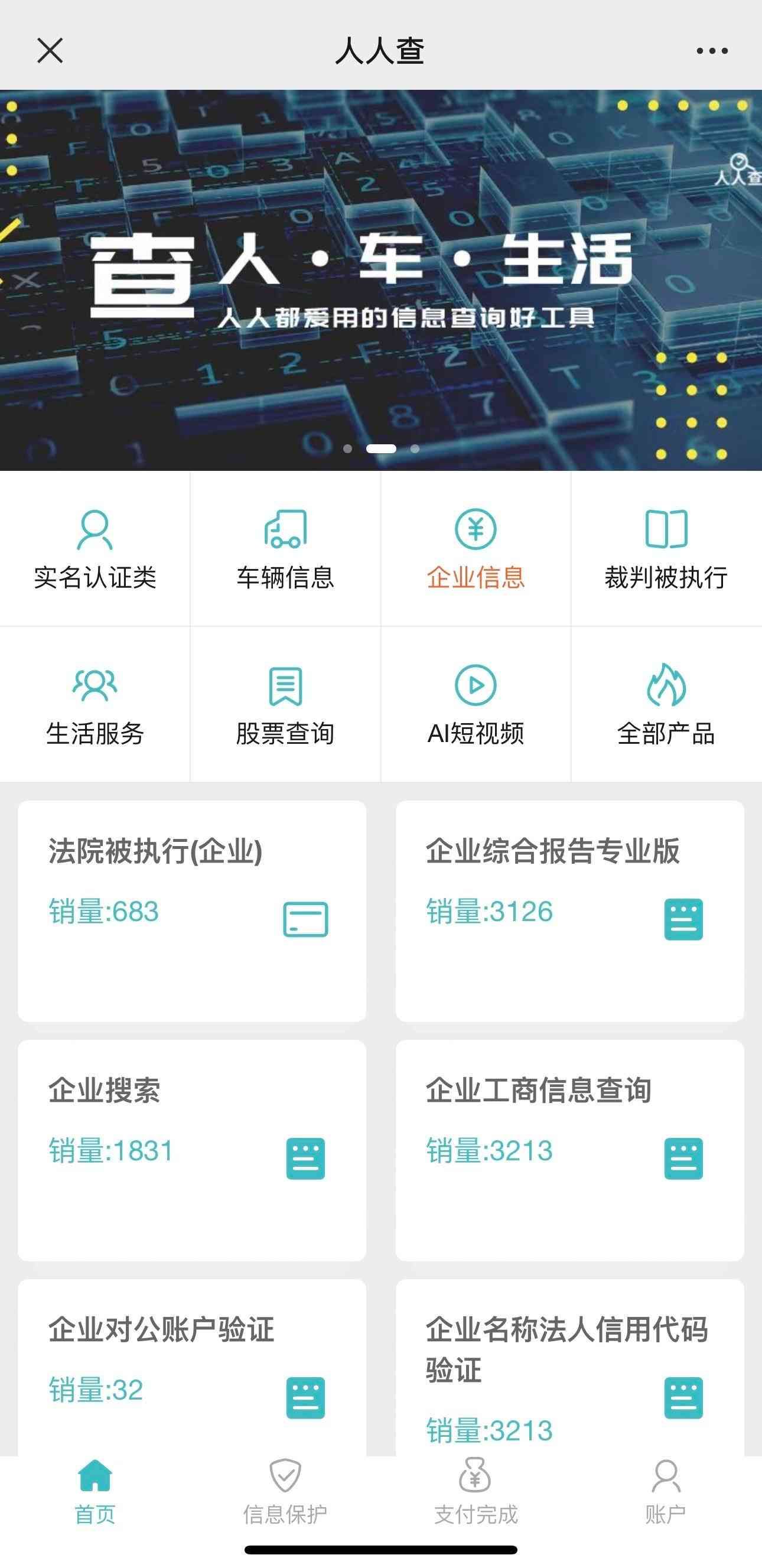 同时在人人查当中还有针对于企业综合报告专业版的全方面的一个企业查询,车辆的相应的所有的车牌号车主姓名及车辆信息,出险记录,维保记录全面的查询,还有针对于手机号姓名的查询及身份证真伪的查询,身份证号人脸照片的查询及生活类的免费的查询,希望这一功能啊能帮助到大家,使用人人查询关注我的主页或全网搜索人人查进行使用,拜拜。