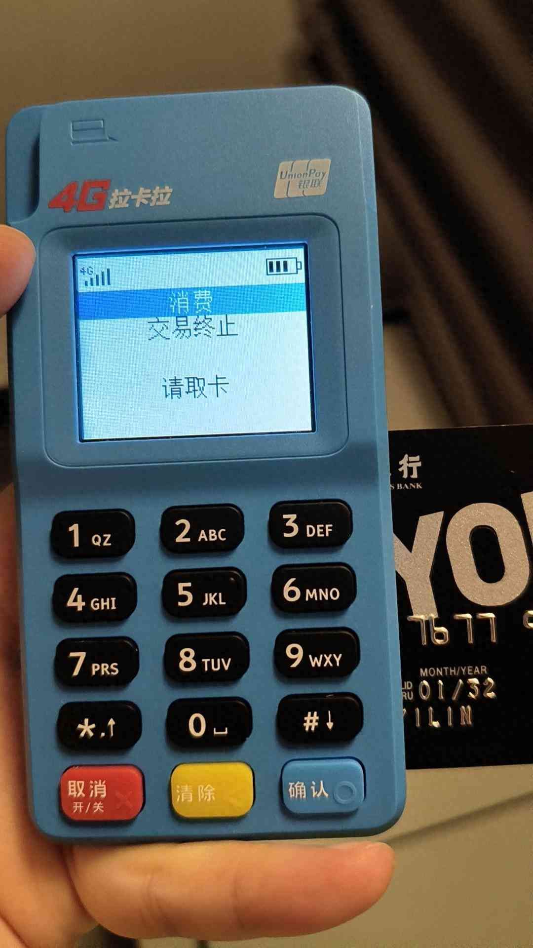 昨天有个卡友找到小汪,说她有张信用卡用不了,刷卡后破s机显示交易终止请取卡。试了好几次了,都是这样。