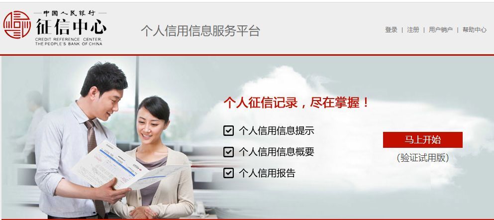 在浏览器中搜索 “中国人民银行征信中心个人信用信息服务平台”(网址:https://ipcrs.pbccrc.org.cn/)打开并进入。个人信用信息服务平台的首页就有明显的查阅入口“点击马上开始”,首次使用需要注册;注册成功后,你就可以选择想要查询的信息了。