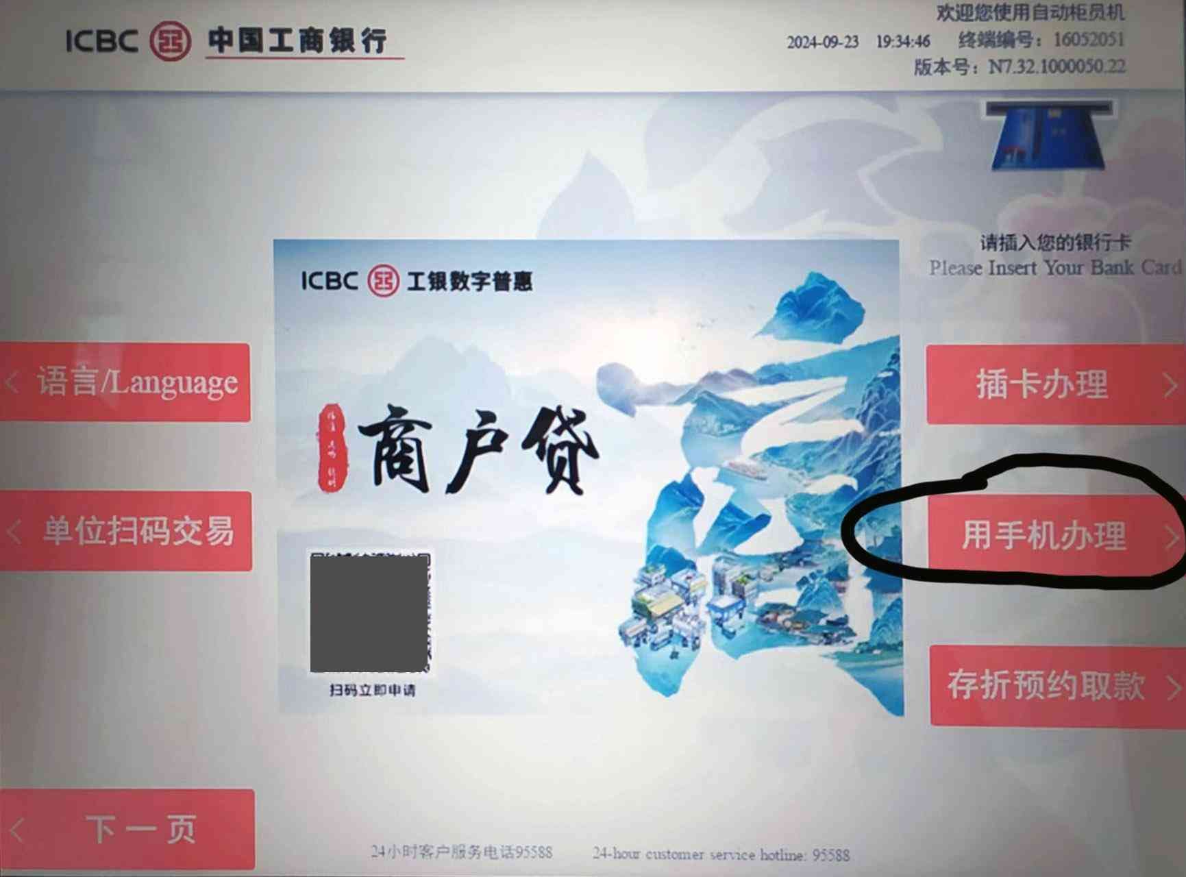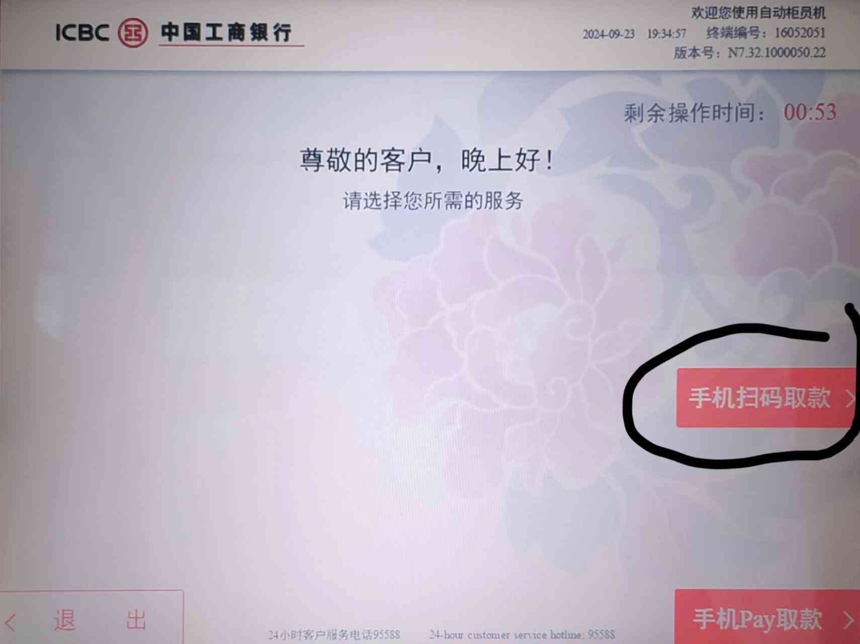 一、来到工商银行自动取款机前,按“用手机办理”选项。