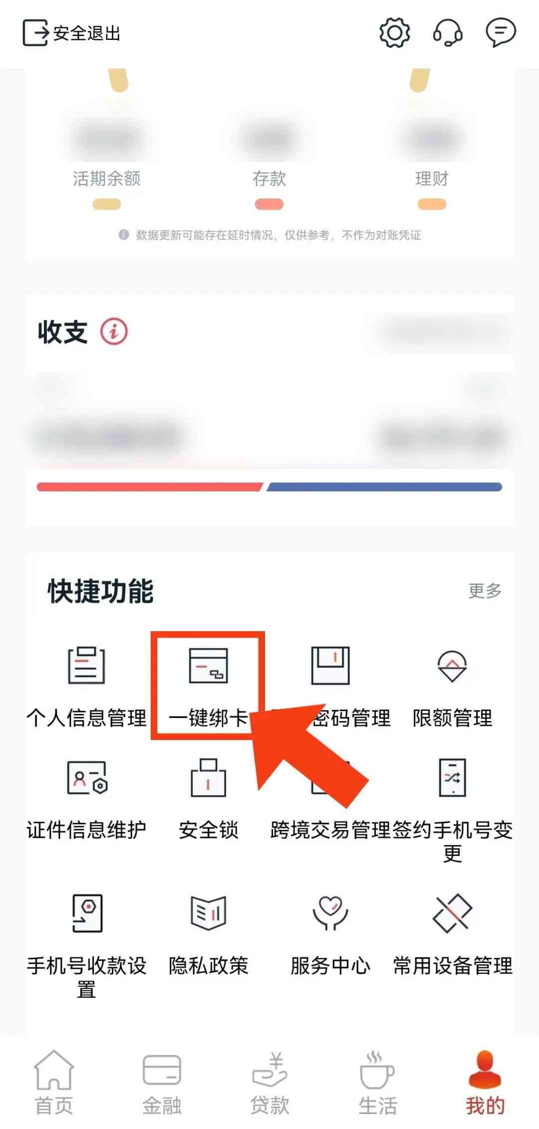点击 【我的】-【快捷功能】-【一键绑卡】