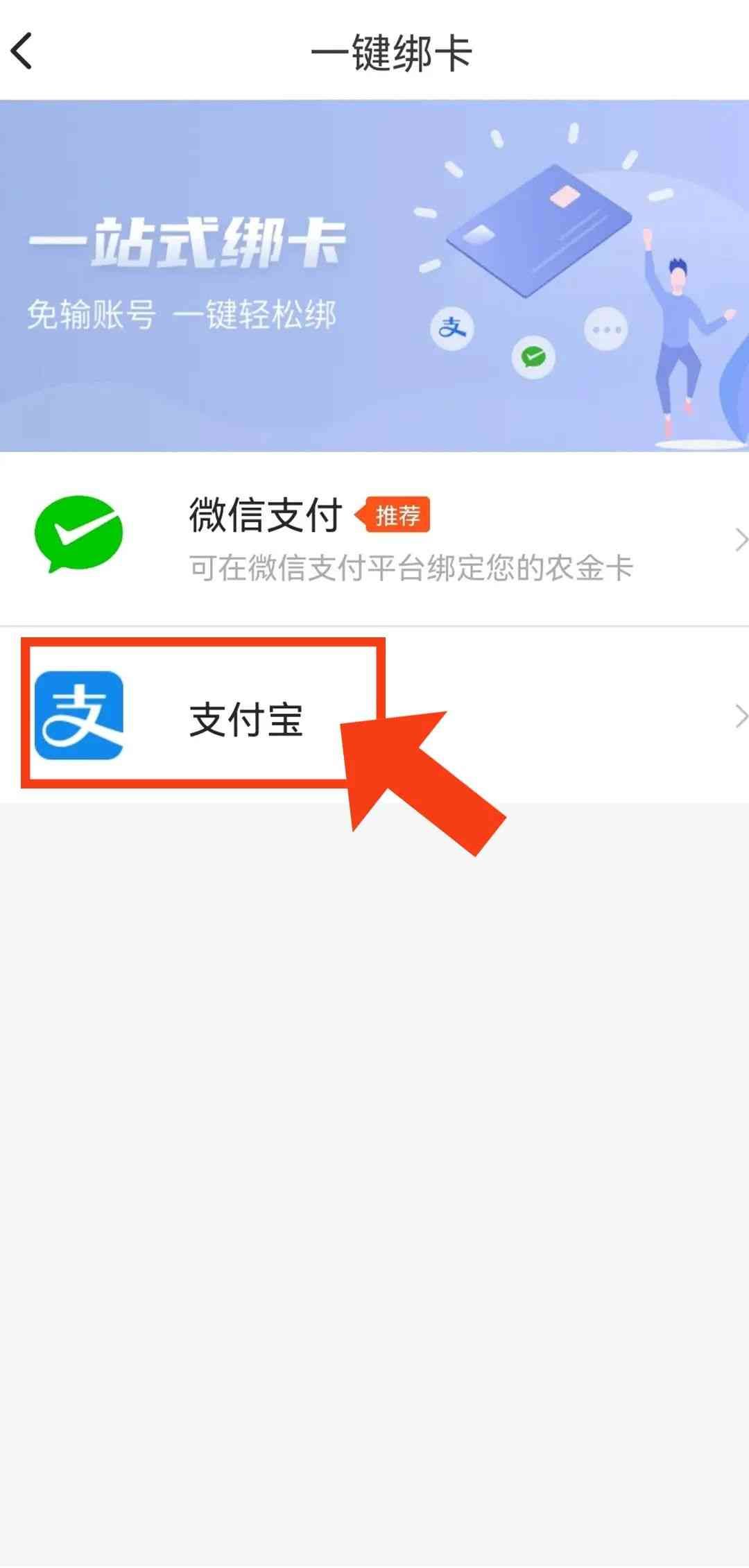 选择 支付宝 - 进入绑卡页面 - 按页面提示操作即可