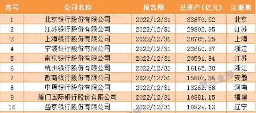 2022年末城商行总资产实力榜