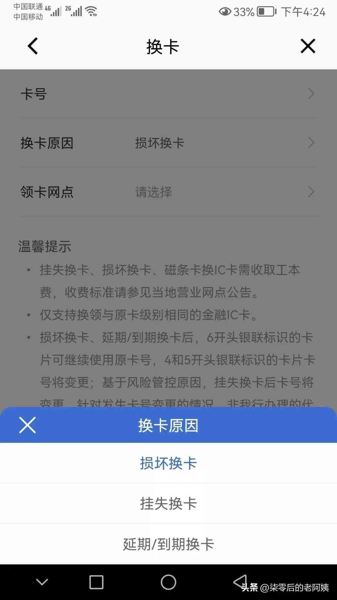 选择对应的换卡原因
