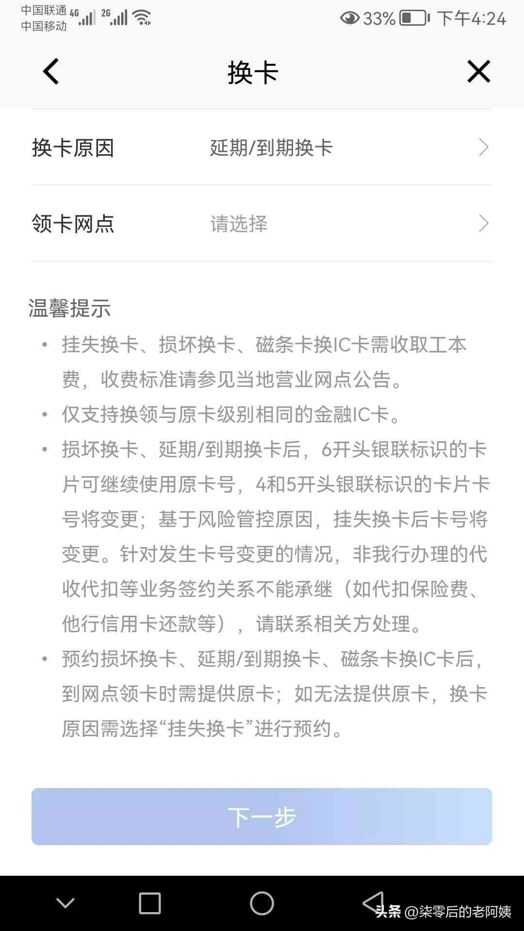 选择预约换卡,出现以下界面,换卡原因选择最下面的“到期换卡”