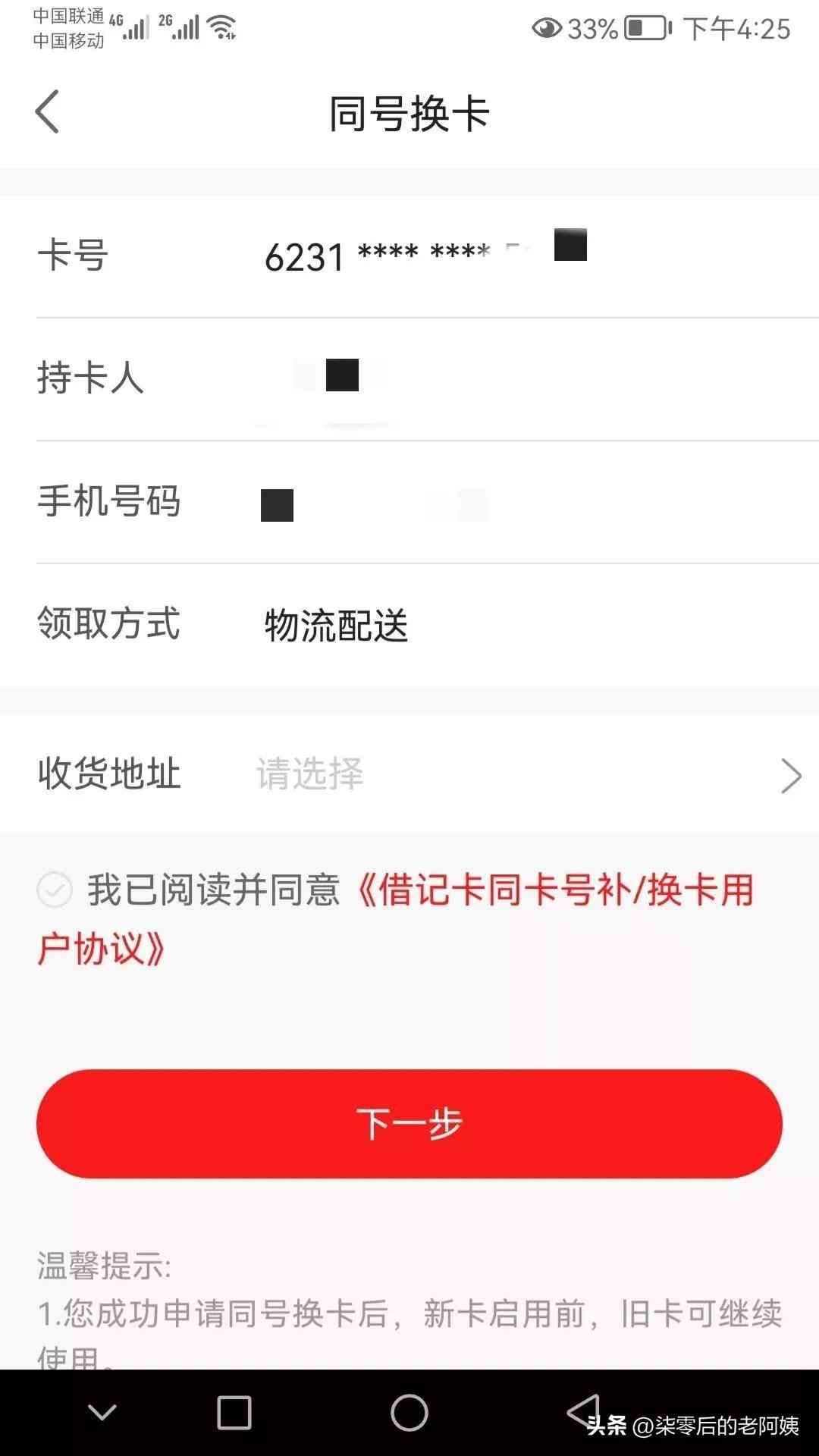 更换银行卡真方便,足不出户,卡号不变,还免费邮寄