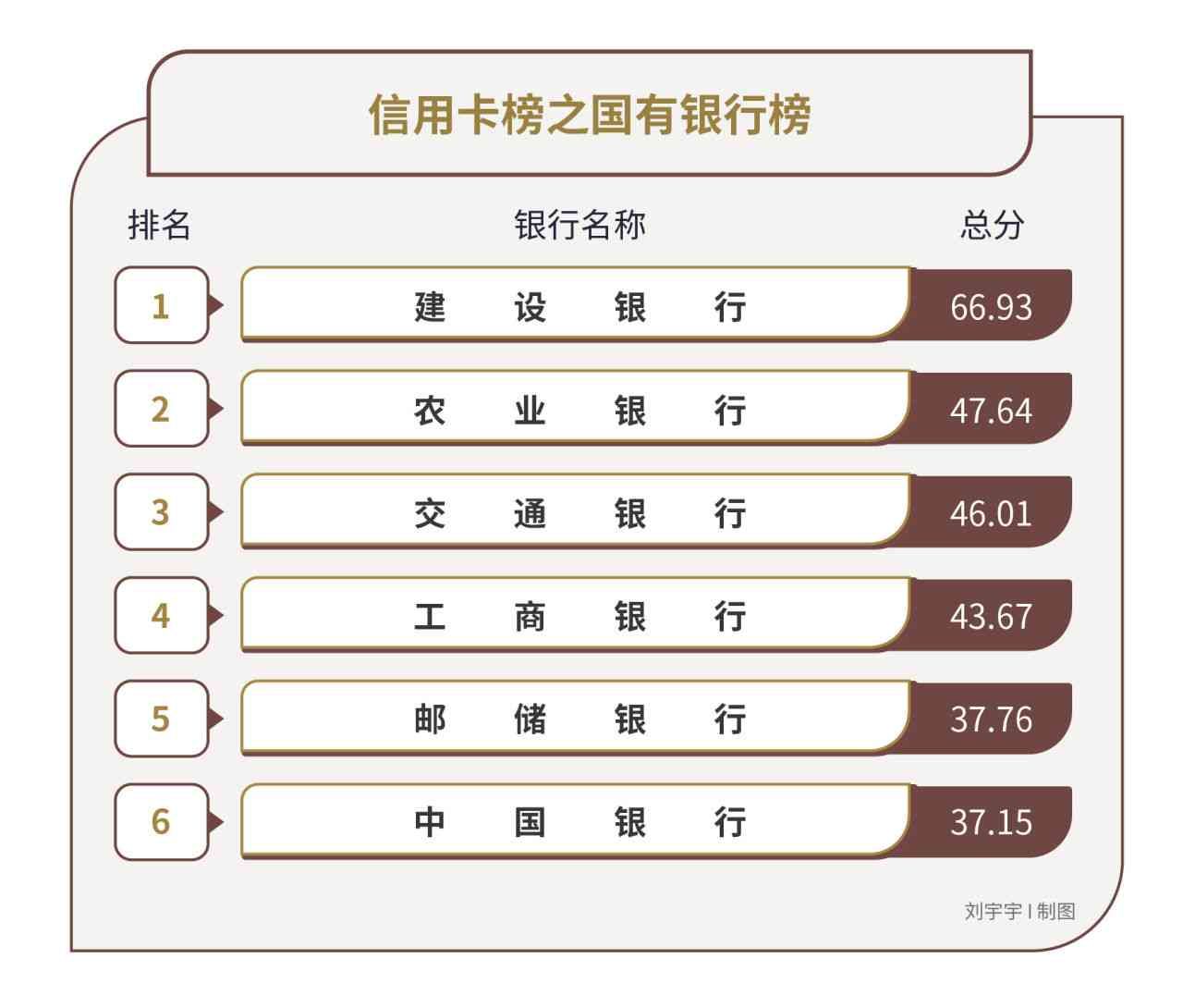 包括交行、工行、邮储银行和中行等其他4家国有银行均位列前十,排名依次为第六、第七、第八和第九。
