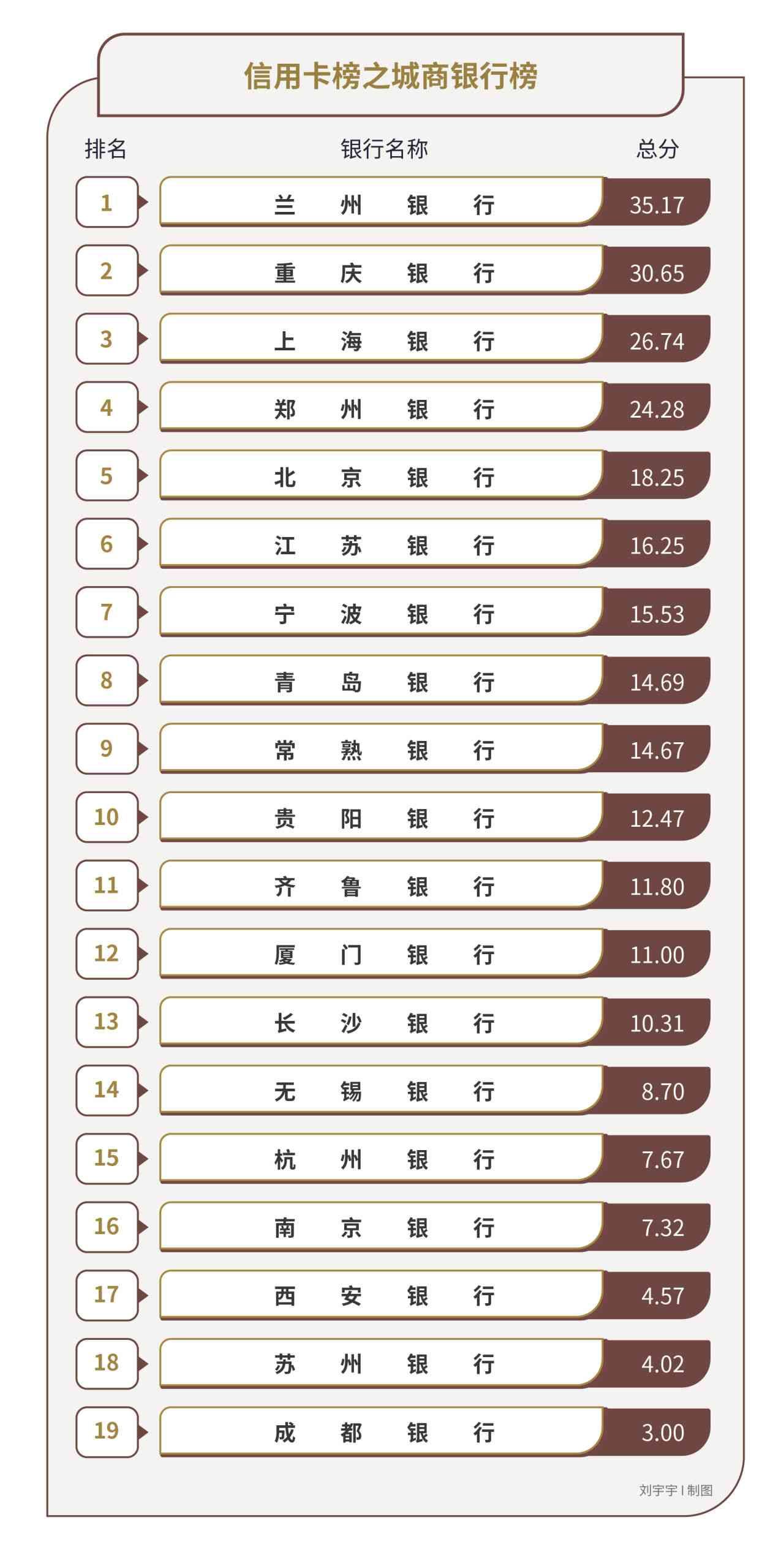 包括兰州银行、重庆银行、上海银行和郑州银行在内的4家入围前二十名。与此同时,仍有8家排名在第三十名之后。最高者与最低者分值相差超过30分。