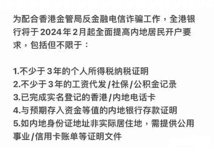 全面提高内地居民开户要求!香港银行开户门槛提高了?