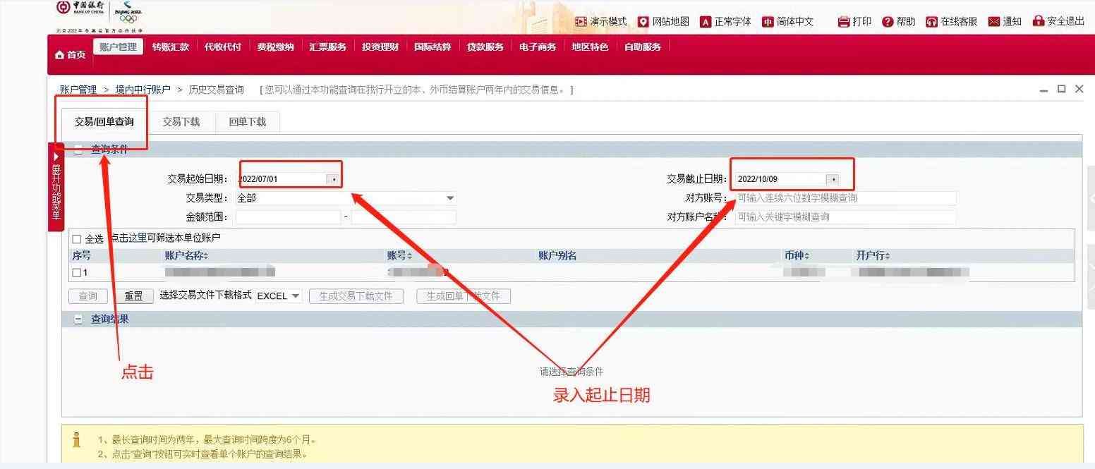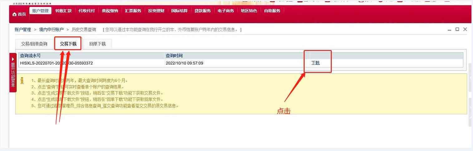 首先登录“中国银行”官网,点击“账户管理-历史交易查询”后,在“交易/回单查询”模块输入要查询的起止日期,点击“全选”进行勾选,然后点击“查询”按钮,选择交易文件的下载格式(在本人这里记账报税的下载成Excel格式)后,点击“生成交易下载文件”进入下一个界面,然后点击“返回”按钮,在“交易下载”模块点击“下载”按钮进行下载,点击“保存”按钮,选择文件要保存的位置后,点击“保存”文件就下载完成了。