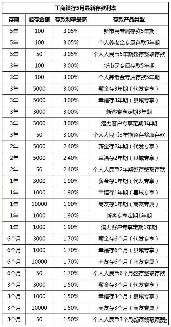 一、中国工商银行5月定期存款利率