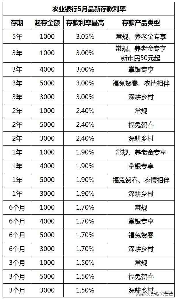 二、中国农业银行5月定期存款利率