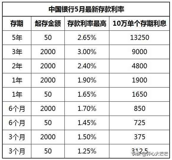 三、中国银行5月定期存款利率