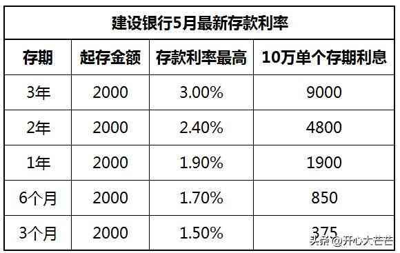 四、中国建设银行5月定期存款利率