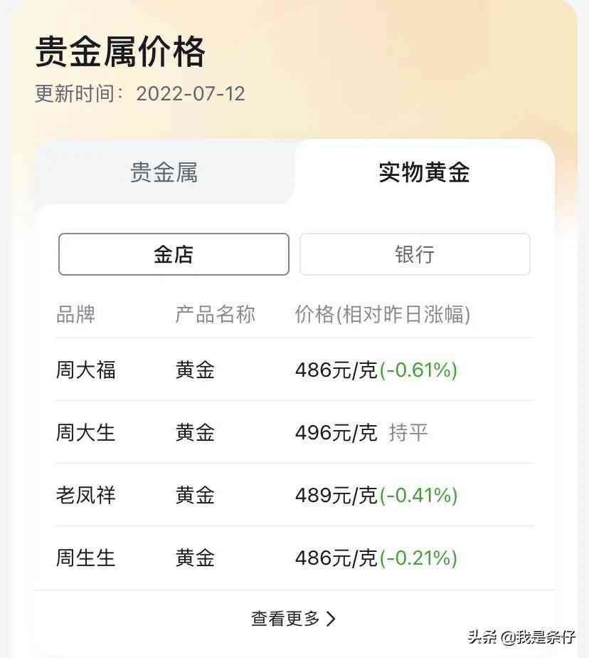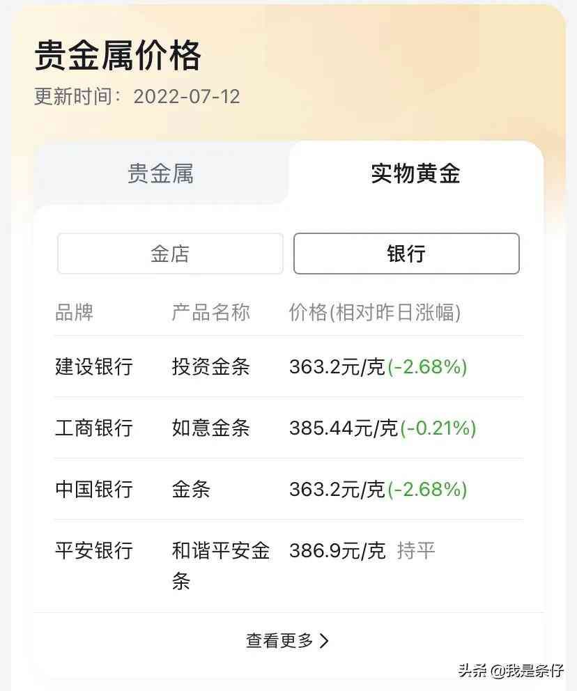 购买之前要知道怎么查询金价,以免做了冤大头。查询方式很简单,在近日头条/支付宝等软件输入“今日金价”或者“实物贵金属”,就能查询到当天的价格。