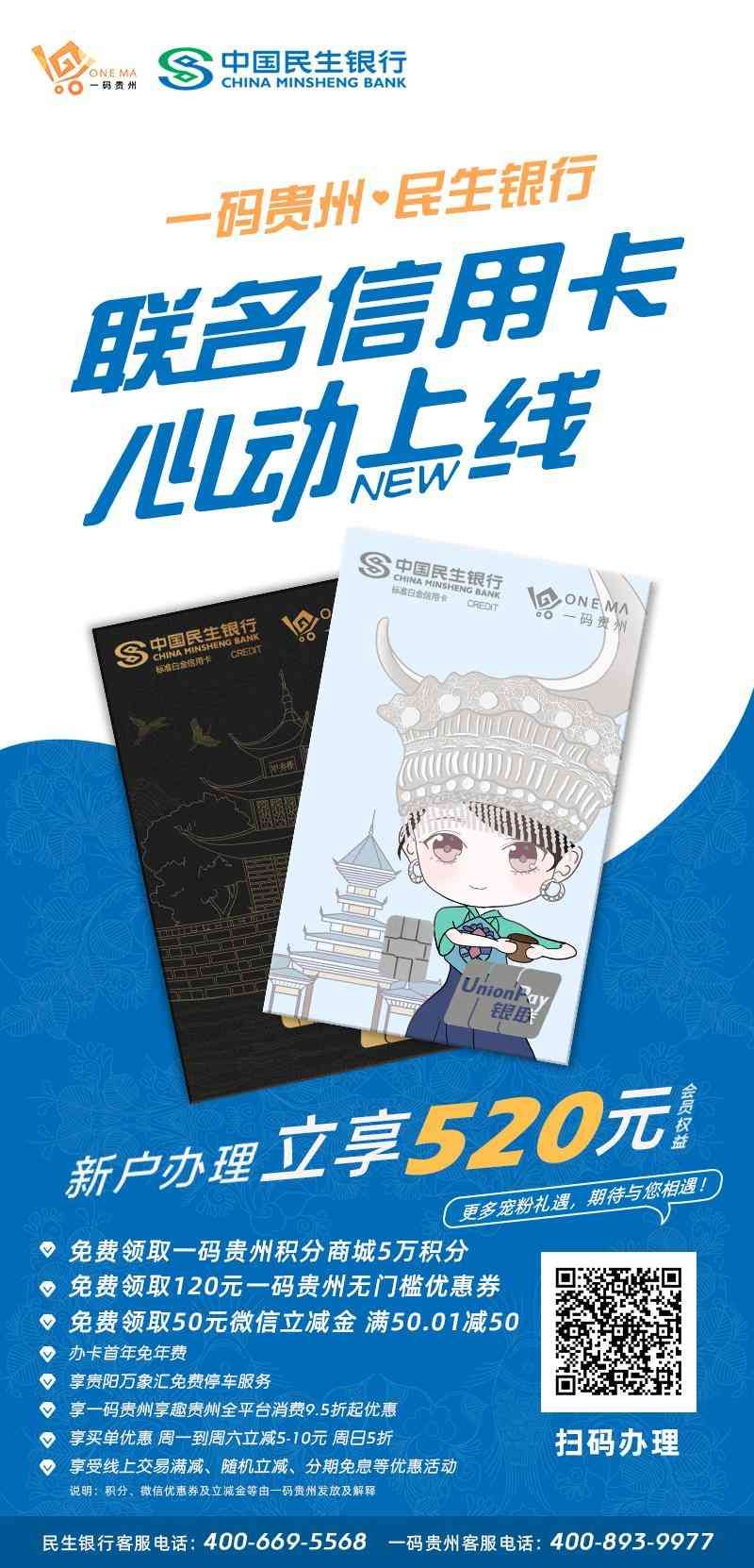 新户办理立享520元丨民生银行x一码贵州联名信用卡心动上线