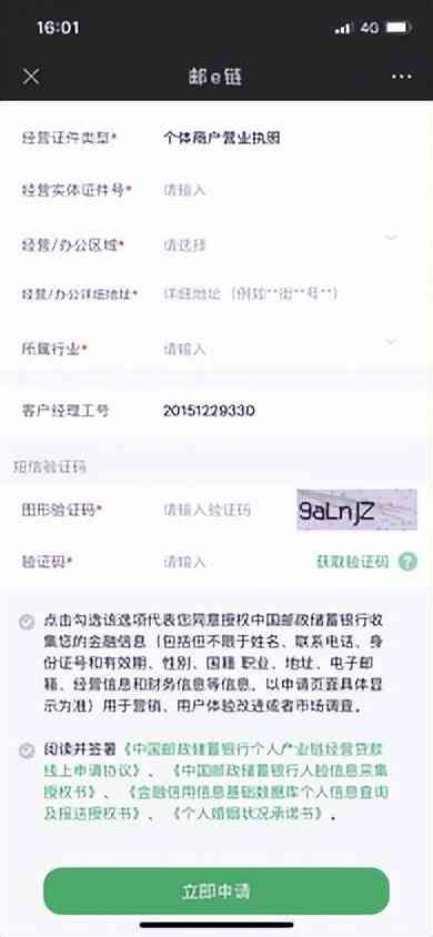 三、邮政银行商户结算贷申请操作流程