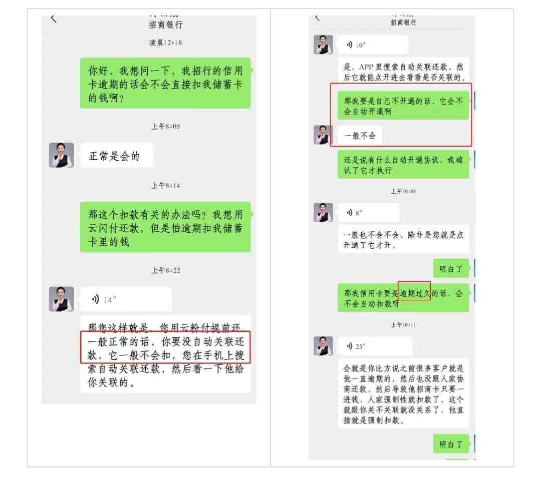 消费实验室了解清楚整件事件的脉络后,联系了招商银行的一位客户经理咨询秒扣款、自动扣款的原因和相关规则。