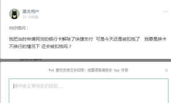 读者的提问:我把当时申请网贷的银行卡解除了快捷支付,可是今天还是被扣钱了,我要是换卡不换行的情况下 还会被扣钱吗?