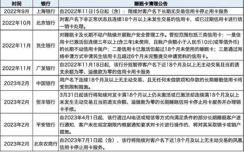 恒丰银行将于2023年3月31日起,陆续对发卡满18个月以上仍未激活或已激活却连续满18个月及以上未发生主动交易且当前透支余额、溢缴款为零的长期睡眠信用卡停止用卡服务并办理销卡手续。