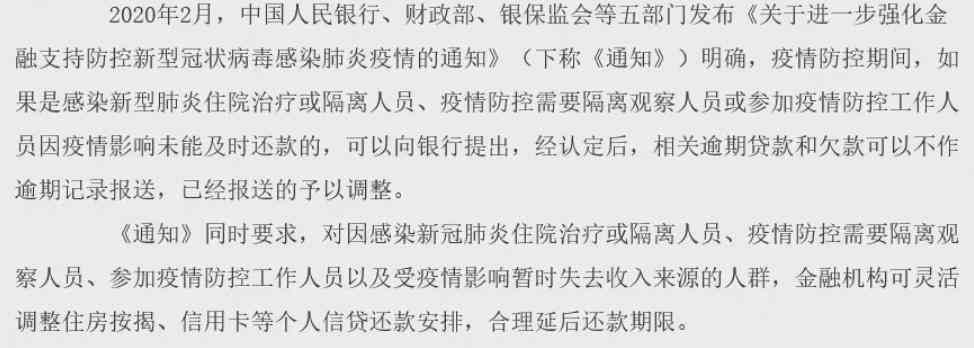 记得2020年,疫情刚爆发的时候,银保监会就发布了因为疫情治疗隔离、封控的人员可以延期还房贷、还信用卡的通知。